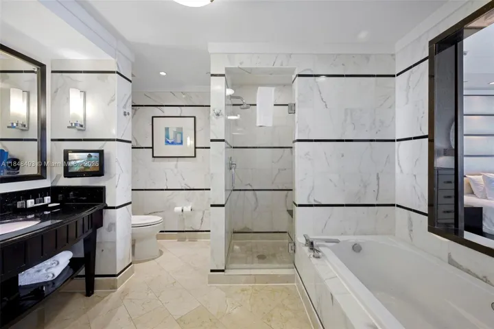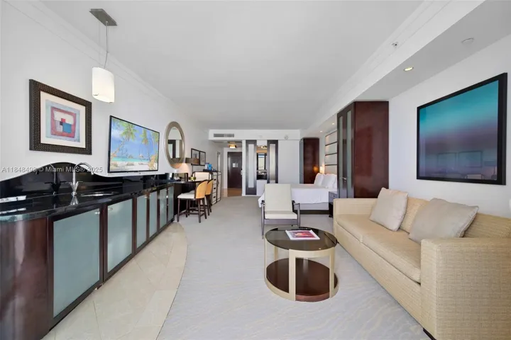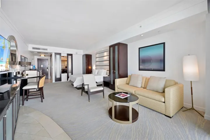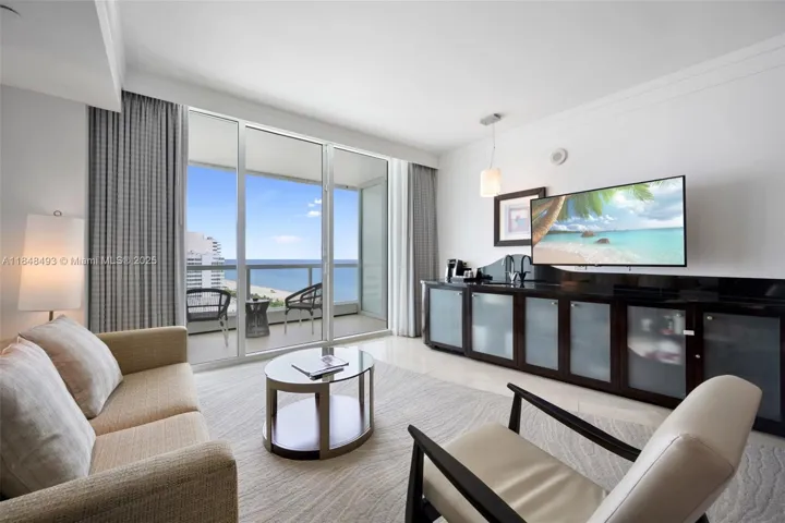 Located at the iconic Fontainebleau Resort. This lovely Jr Suite offers breathtaking views of the ocean with north and east views from a private balcony with unlimited views of the hotel pool and grounds. Unit includes turnkey furnishings with a king bed plus a sleeper sofa for additional guests. The Fontainebleau Resort offers fantastic restaurants located off the breathtaking pool surrounded by cabanas on the 22 oceanfront acres in Miami Beach, & notable fine-dining restaurants, a fabulous artisanal bakery & gelato cafe, a legendary bar situated in the main hotel lobby, shops, & so much more. Owner has the option of placing the property in the Hotel Program as income property. Owners enjoy access to Lapis Spa, amenities that include a private lounge exclusively for owners.